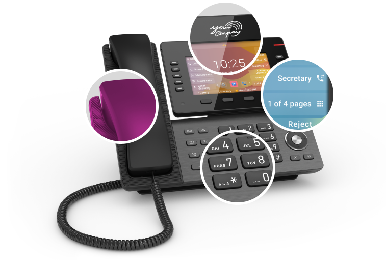 Snom desk phones can be highly customised. In addition to being able to customise the phone's user interface (UI), most models can also be physically customised.